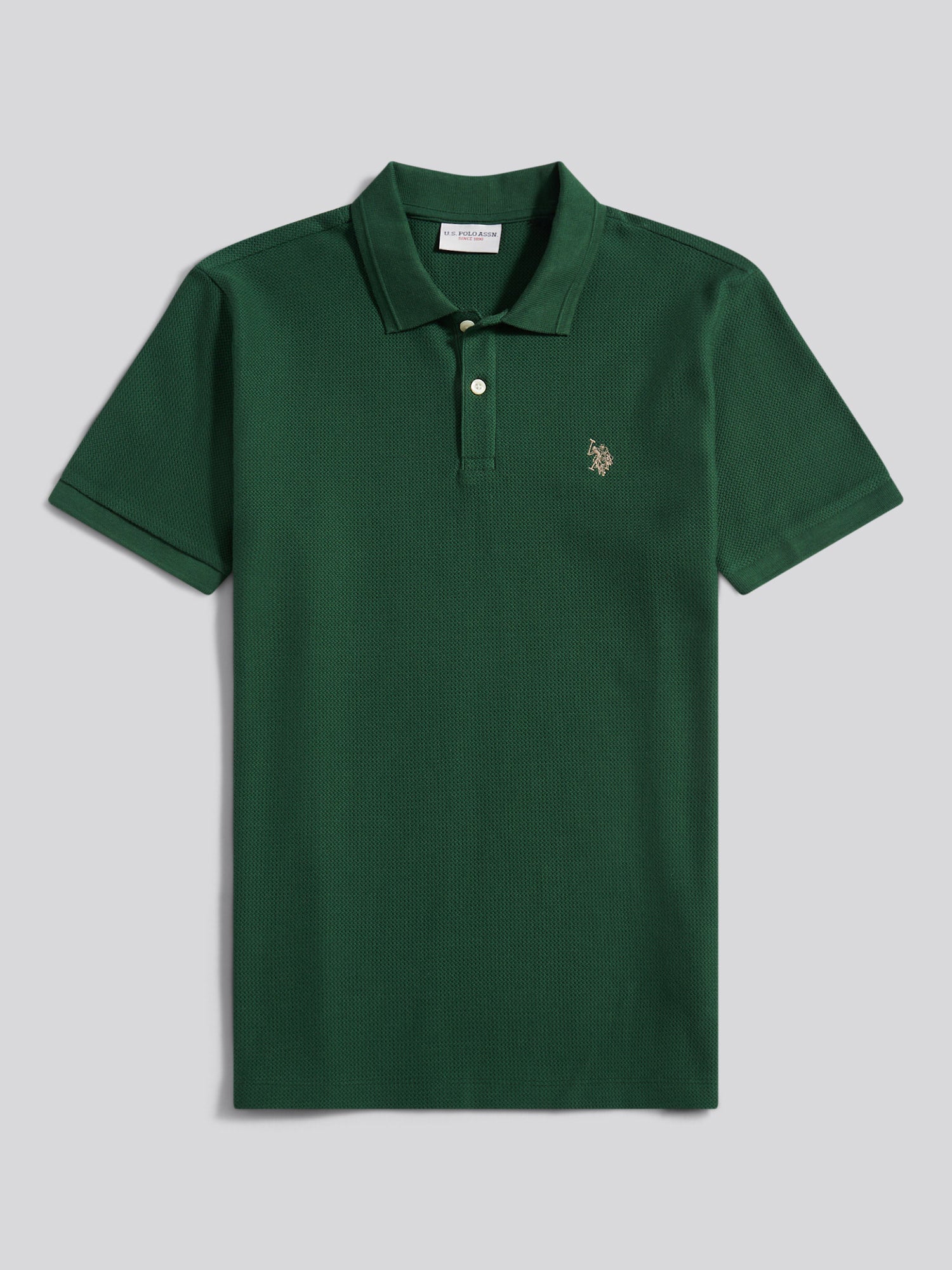 For days that call for something elevated yet effortless, the U.S. Polo Assn. Mens Herringbone Texture Polo Shirt is a refined essential. Designed with subtle herringbone texture across the body and a crisp flat knit collar, it brings depth and character to everyday outfitting. Team it with smart chinos and loafers for an understated take on off-duty polish.