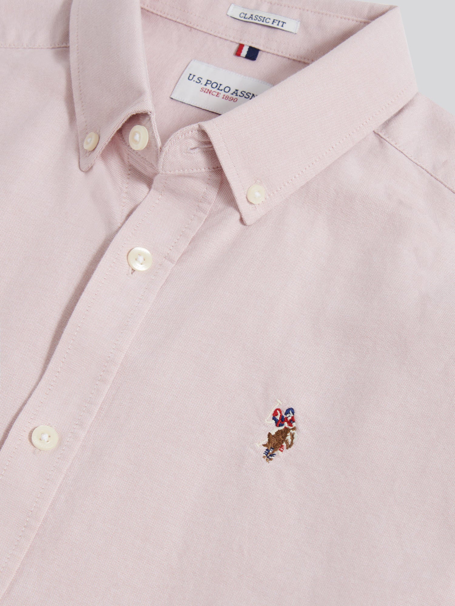 The essence of smart-casual dressing, this U.S. Polo Assn. mens Short Sleeve Oxford Shirt offers a versatile look with refined style. Crafted from luxurious oxford cotton with a soft peached finish, it features the iconic double Horsemen motif for an authentic touch. Pair with chinos or fitted denim for a polished look that effortlessly transitions from day to evening.
