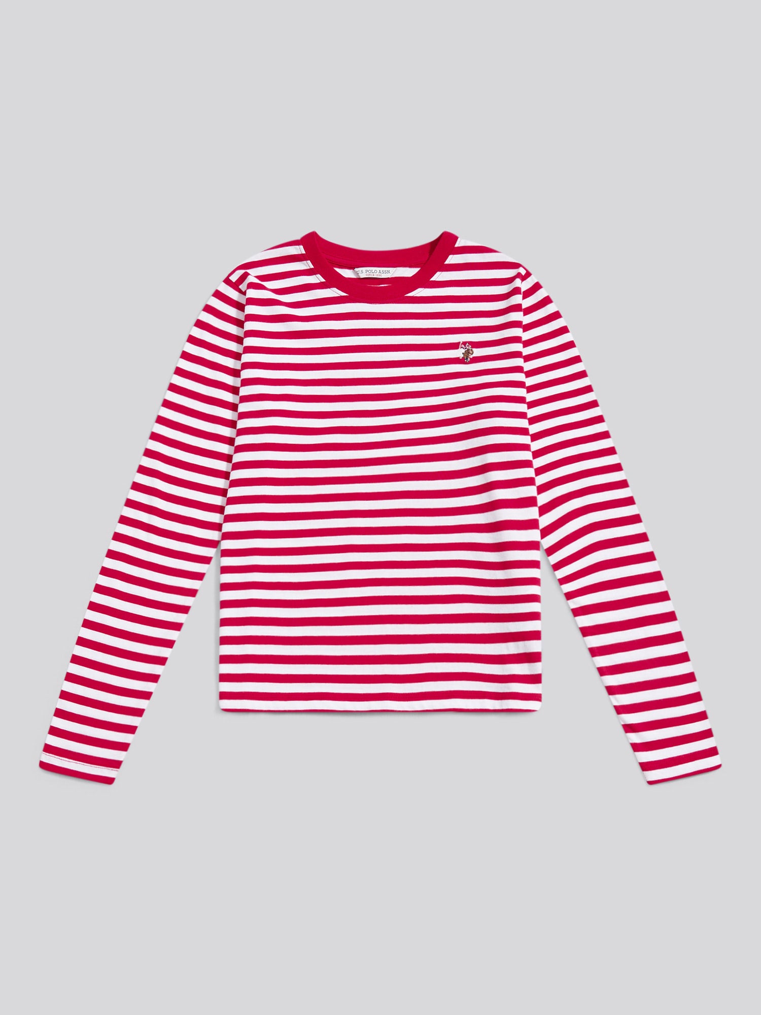Update your layering game with the U.S. Polo Assn. Womens Stripe Long Sleeve T-Shirt. Designed with a refined stripe pattern and authentic Double Horsemen embroidery at the chest, it's a go-to for effortless off-duty dressing. Style with relaxed denim or tucked into chinos for a look that moves from brunch to countryside walks.